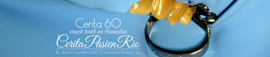 di episode kali ini, saya ingin mengangkat kembali tentang kembalinya CeritaPasienRio.com dengan format baru. selain kasus-kasus yang lebih umum dijumpai, disini juga akan menampilkan pekerjaan dengan rubber dam. Saya sendiri baru mendeklarasikan diri saya untuk memakai rubber dam semenjak saya pulang dari Jerman tahun lalu. sebelumnya, saya memakai rubber dam hanya saat mengerjakan pekerjaan endodontik saja. namun, atas bimbingan para mentor2 di dalam dan luar negeri, maka sejak sepulang itu saya melakukan pekerjaan restorasi dengan rubber dam. terima kasih juga dukungan dari istri saya, Arum Wijayanti, dan teman2 seperjuangan drg. Rinto Abimanyu SpKG dan drg. M. Furqan Rizal SpKG.