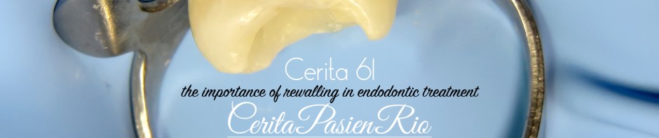 alhamdulilllaah, kasus-kasus yang bisa diceritakan di CeritaPasienRio.Com juga makin banyak seiring berjalannya waktu, saya pun terus belajar untuk bisa meningkatkan kemampuan saya di bidang konservasi gigi dan endodontik. Sampai pada akhirnya saya kedatangan seorang pasien yang mengatakan bahwa ada “daging nyelip” di sela-sela giginya, eh ternyata oh ternyata itu adalah gusinya dia yang sudah “mati” akibat medikamen arsen yang bocor. hmmmm… tak sabar menunggu ceritanya… tunggu sampai habis ya. karena saya kasih bonus video disini.. hehe.. 😉