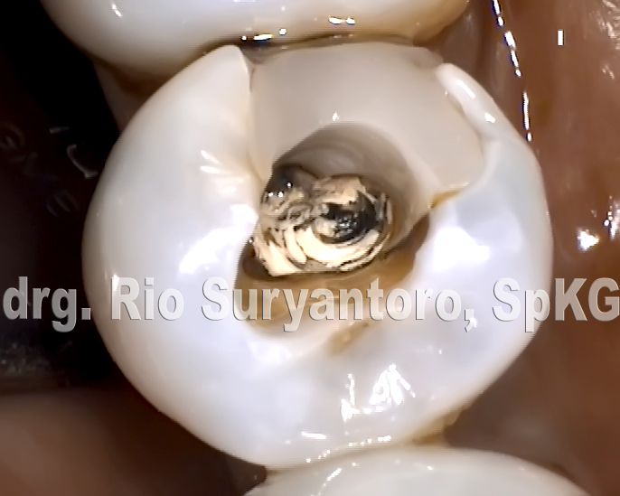 gambar 4. keadaan gigi 45 setelah dilakukan preparasi akses.